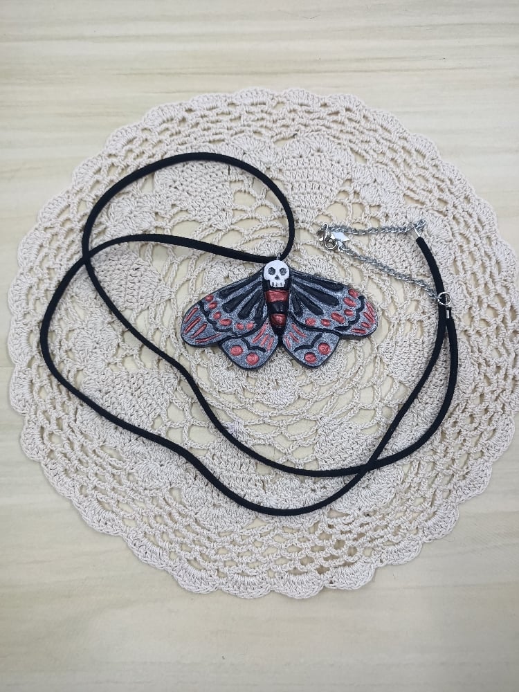 Polymer clay moth. Necklace approx 37cm long not including pendant.