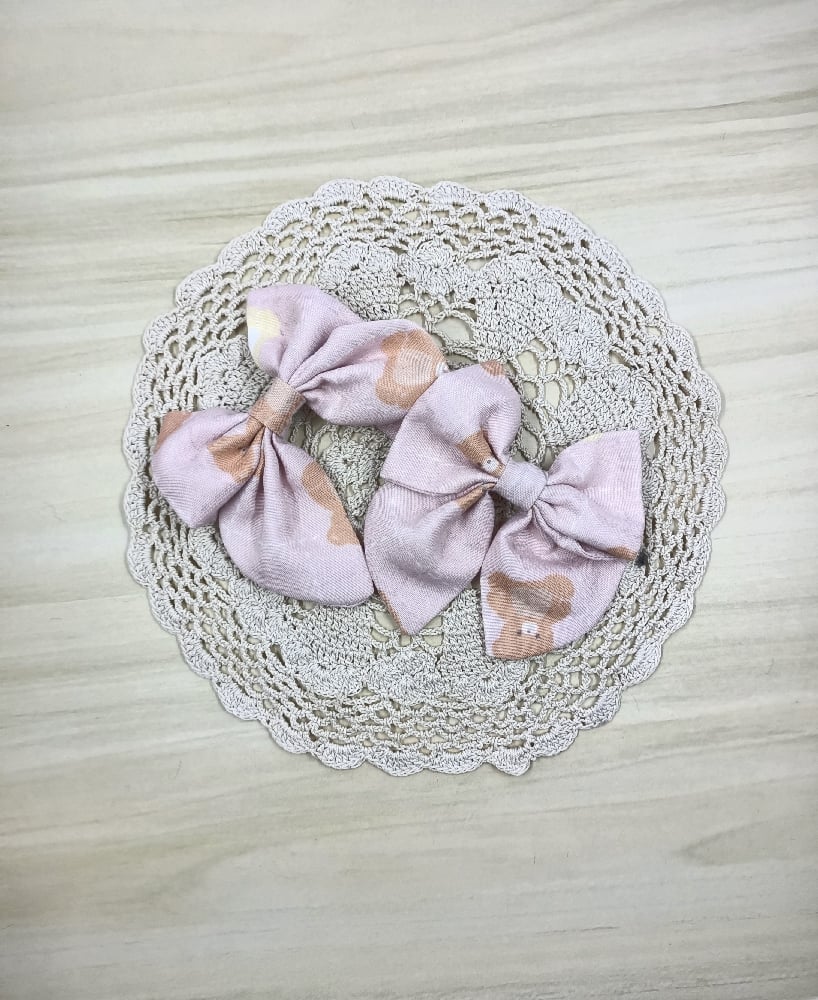 Pink double bow: Each is approx 7.5cm (w) x 8.5cm (h)