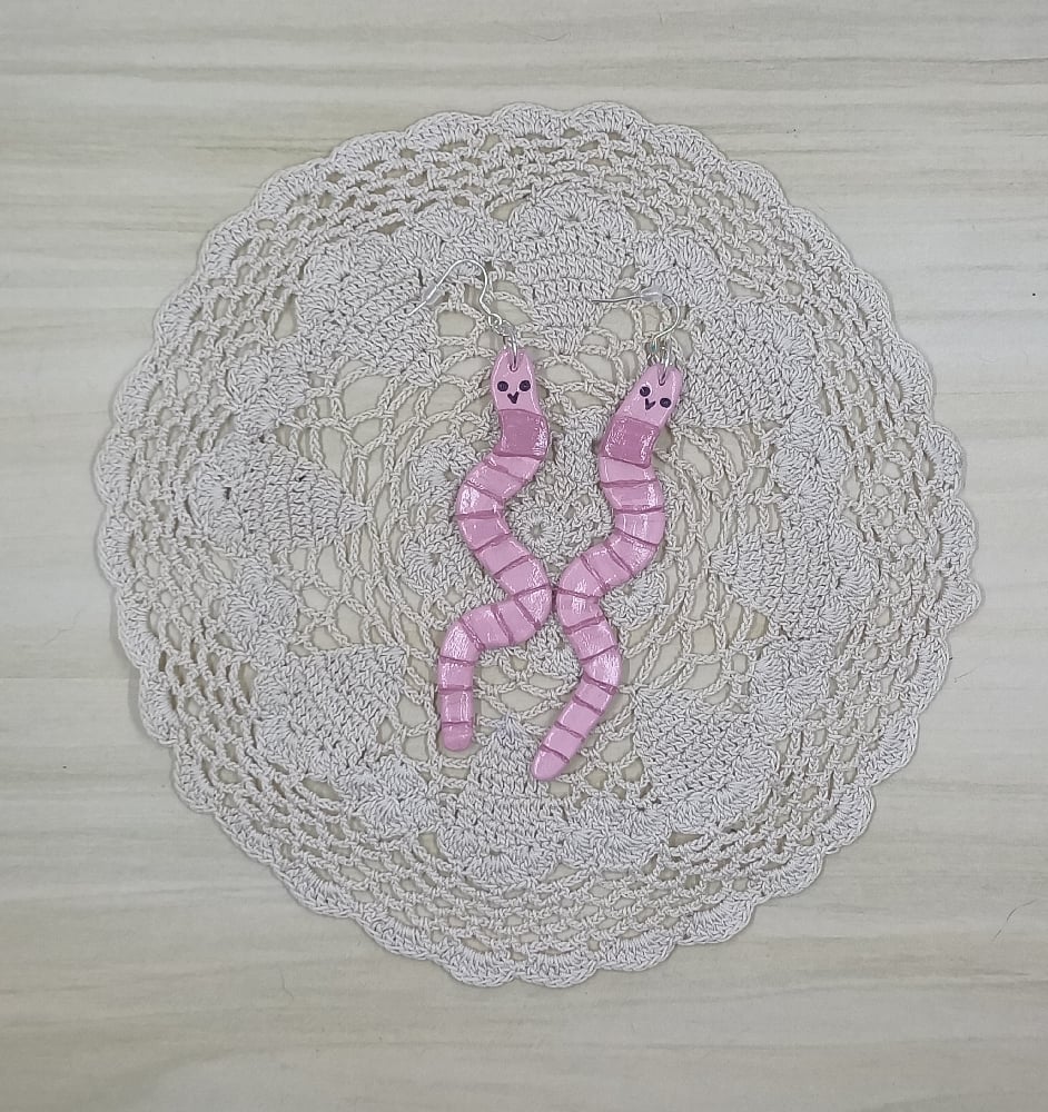 Worms made from polymer clay, painted then finished with a gloss varnish.